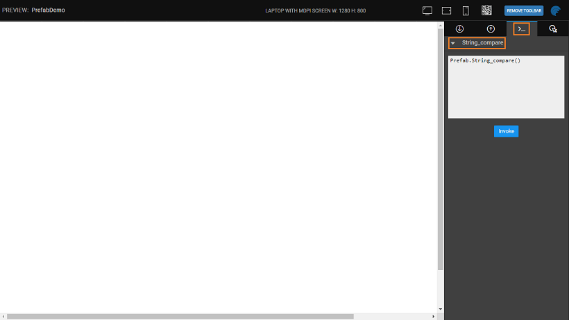 - The various methods included in the Prefab can be viewed and invoked from the Methods tab.