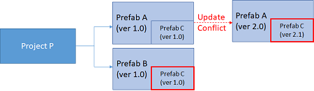- If Project P updates Prefab A to ver 2.1, then the Prefab C in Prefab B will be reverted to the original ver 1.0.