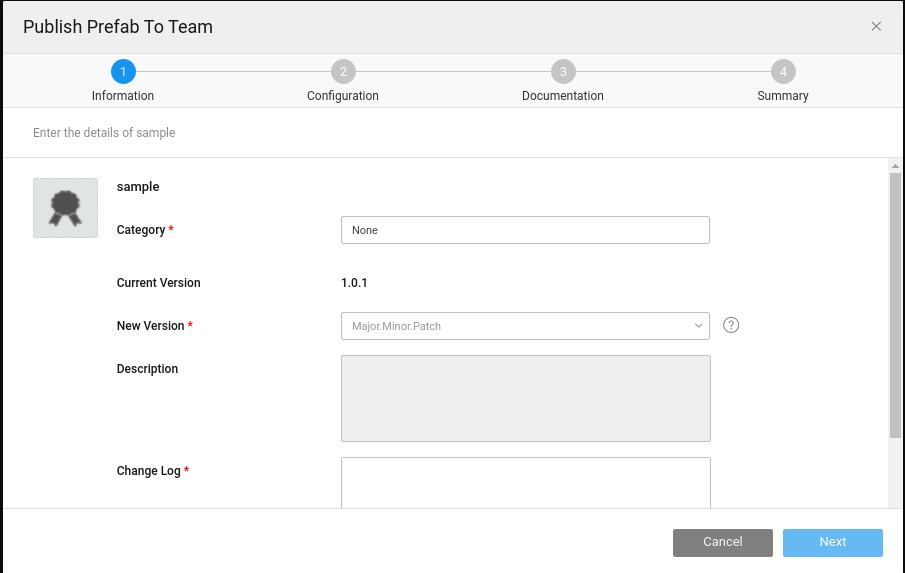 Publish to Project: Prefab can be made available to a specific project in your project workspace or network for testing purposes only.