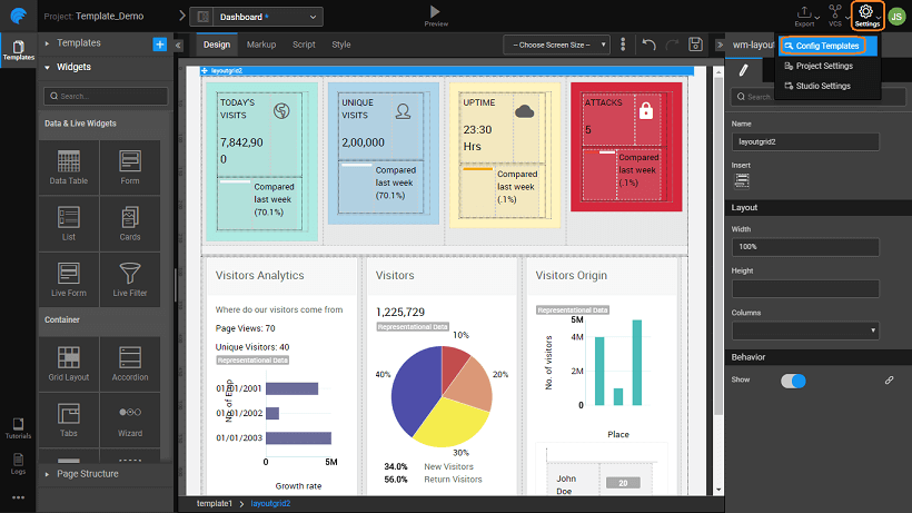 You can create and design a new page like any other page of an application. You can use an existing template and make changes. Here we have created a Dashboard page and are making changes to the existing Sales Dashboard template.