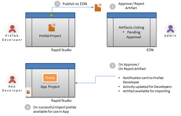 Prefabs can be imported from this dialog. Other Artifacts are available for use as soon as EDN Admin approves the Artifact.