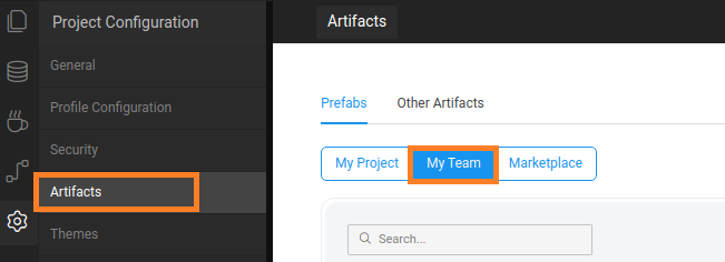 2. In Prefab Artifacts, go to the Approved Artifacts where we can select the Artifact to share.