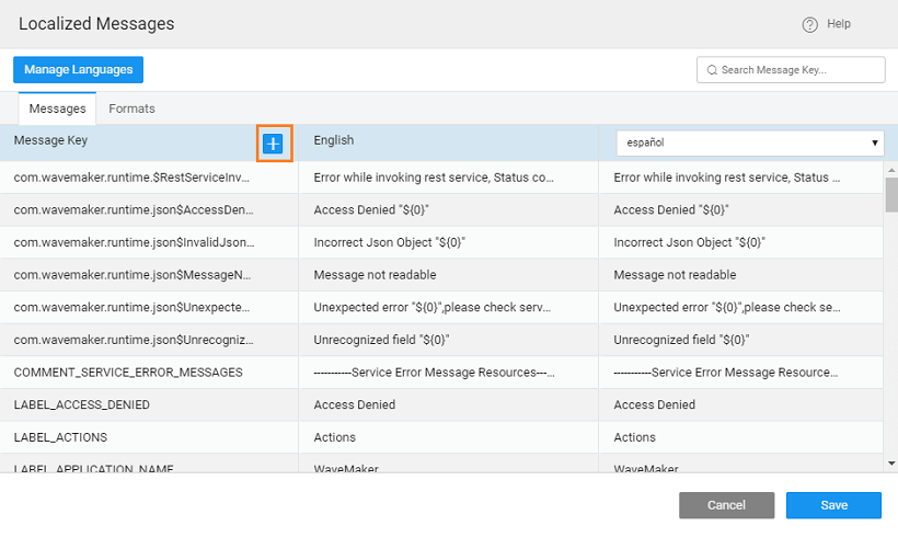 1. To create a new localized text, click the Plus icon placed next to Message Key.