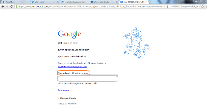 • Create an application using WaveMaker. Drag and Drop the Google OAuth PreFab onto the canvas. You can use the default login page created by WaveMaker.