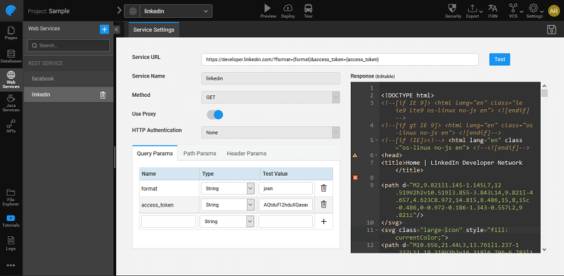 From WaveMaker app designer, import a web service with the proper credentials as obtained from the above step.