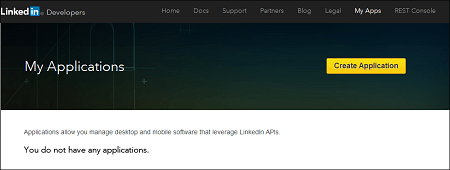 - Log on to https://developer.linkedin.com/ and enter your credentials. LinkedIn Developers page is displayed.