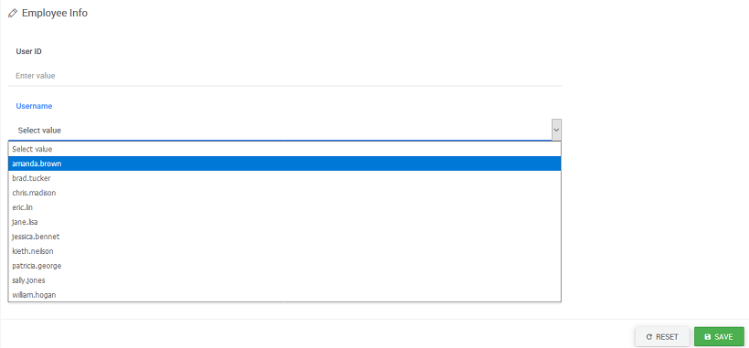 2. Dataset for the form field widget is auto populated with the Variable Dataset field. Data field and display field is set to field’s key. Here, the dataset can be bound to any other variable or widget.