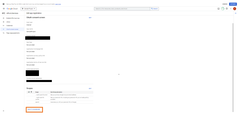 1. Set up user account in the Google Console. This is to create an OAuth application to fetch the Client ID and Client Secret.