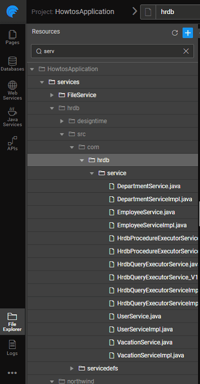 - Import a database service: (we are using the sample HRDB)