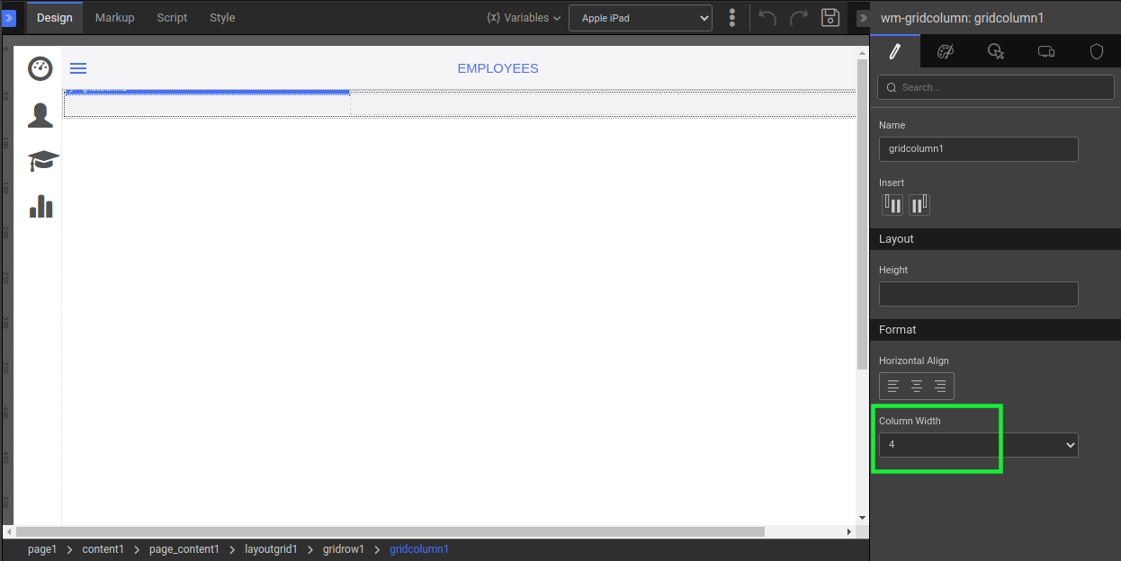 to 4 and the other to 8.The first column contains the List widget, which is bound to Employees.