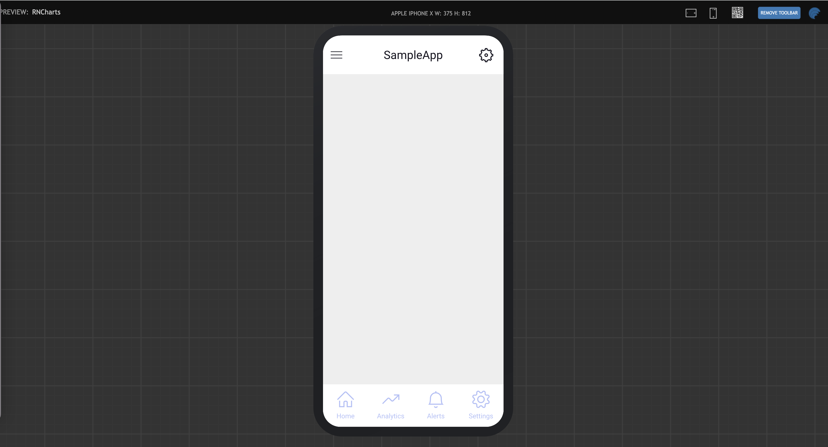 - An application preview displays, where one can select the target device to run the app. This action previews the app on various devices, including different phone sizes.
