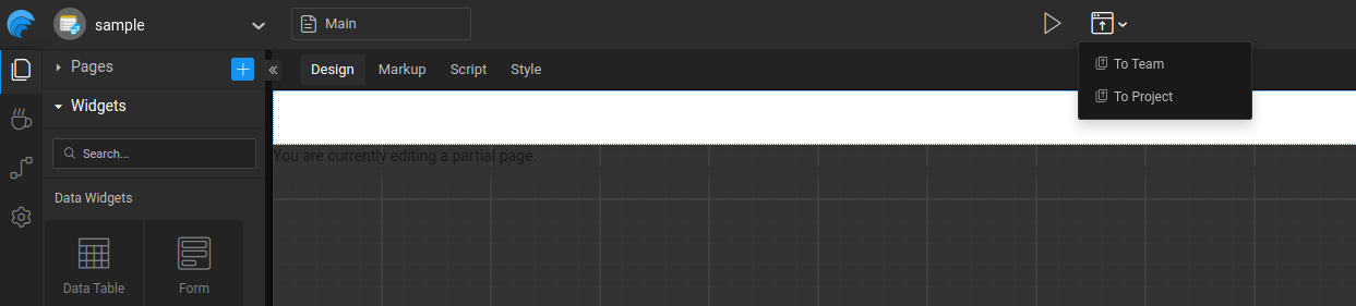 - Publish to Workspace (only for non-enterprise version) - Once published to workspace the Prefab will implicitly be available for use across all projects within the developer's workspace.